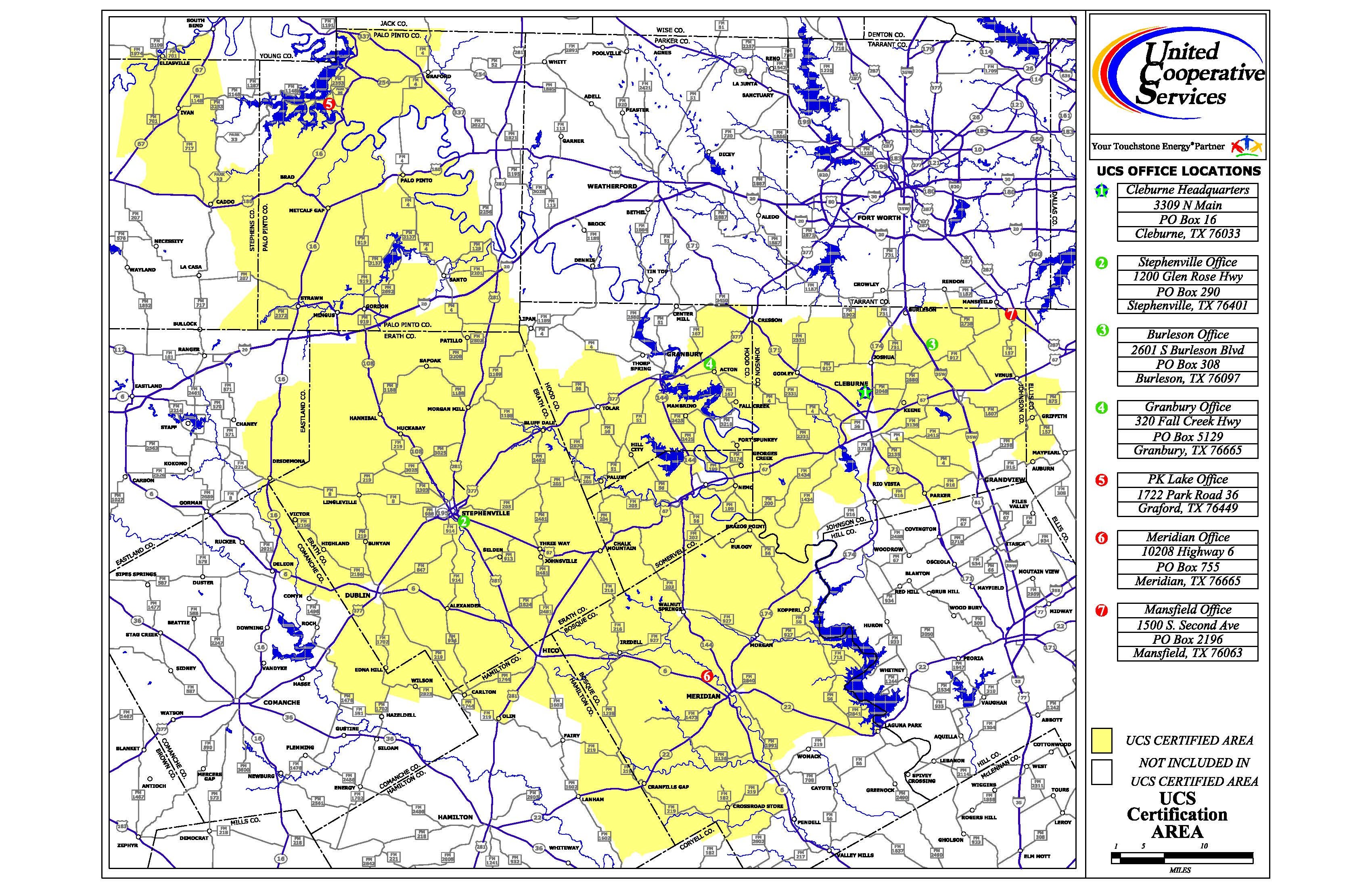 - Counties Served – 14 total. All or parts of Bosque, Comanche, Coryell, Eastland, Ellis, Erath, Hamilton, Hood, Johnson, Palo Pinto, Somervell, Stephens, Tarrant and Young counties.